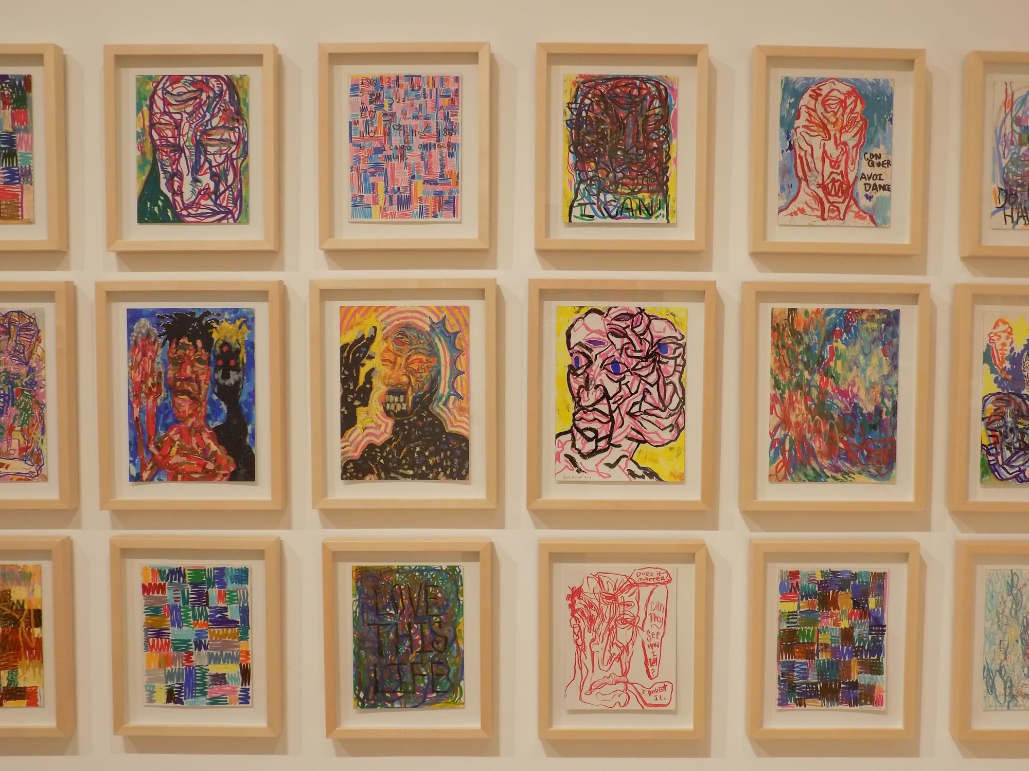 Both “A Match Made in Heaven: Katherine Bernhardt x Jeremy Scott” and “Positive Obsessions: Drawings by Basil Kincaid” are on view through through this Sunday, October 26