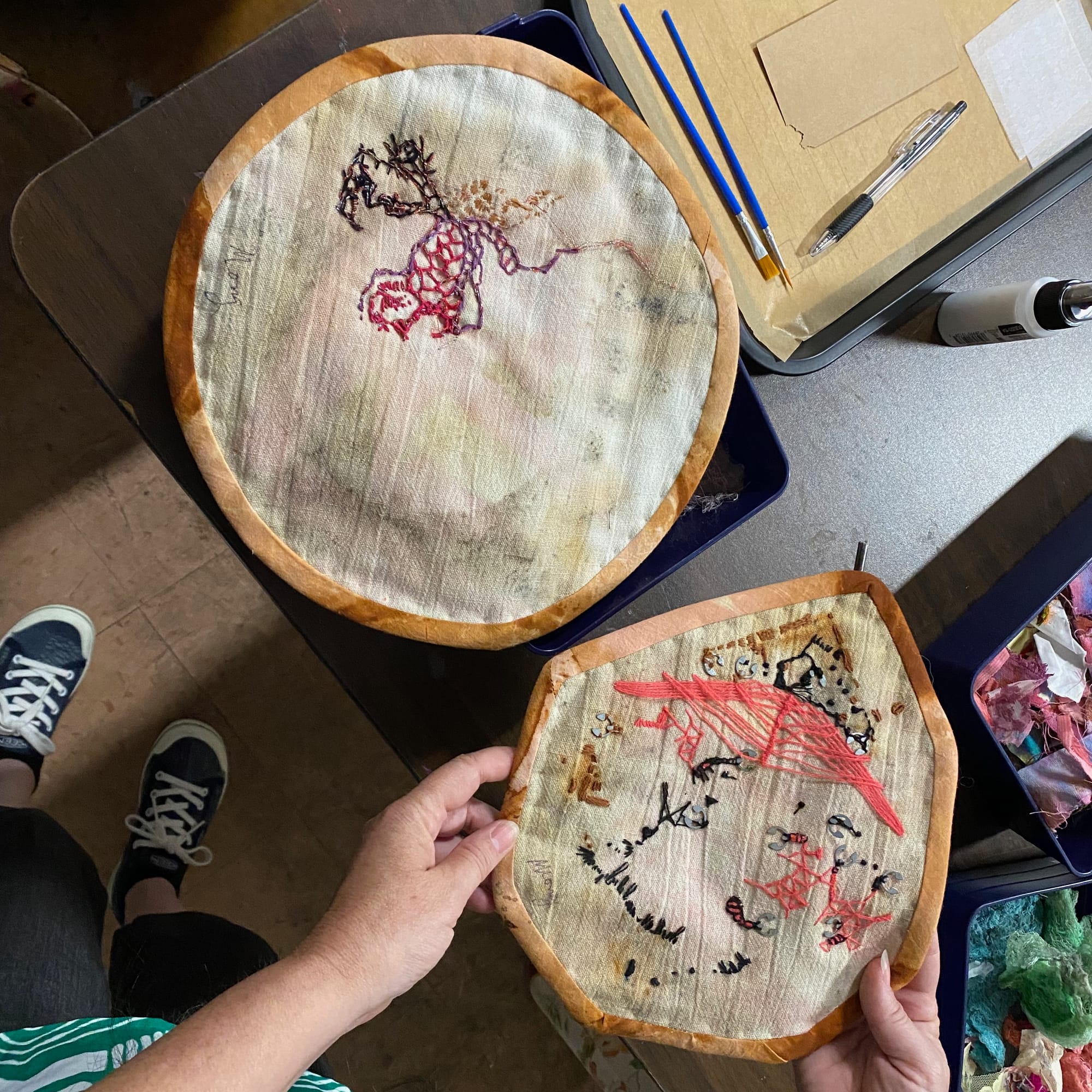 Long aligned her project’s theme of bridging gaps in health care with her own story. While she and her husband were uninsured as they worked part time while going to college in Kansas, she was diagnosed with cancer. They made too much income to qualify for Medicaid, but did not have employers who offered health insurance. A program for women Long’s age with her specific cancer picked up the expenses for her treatment. During that time, she stitched two imaginative abstract images – one that depicts her cancer cells, and another that shows therapeutic radiation attacking them.