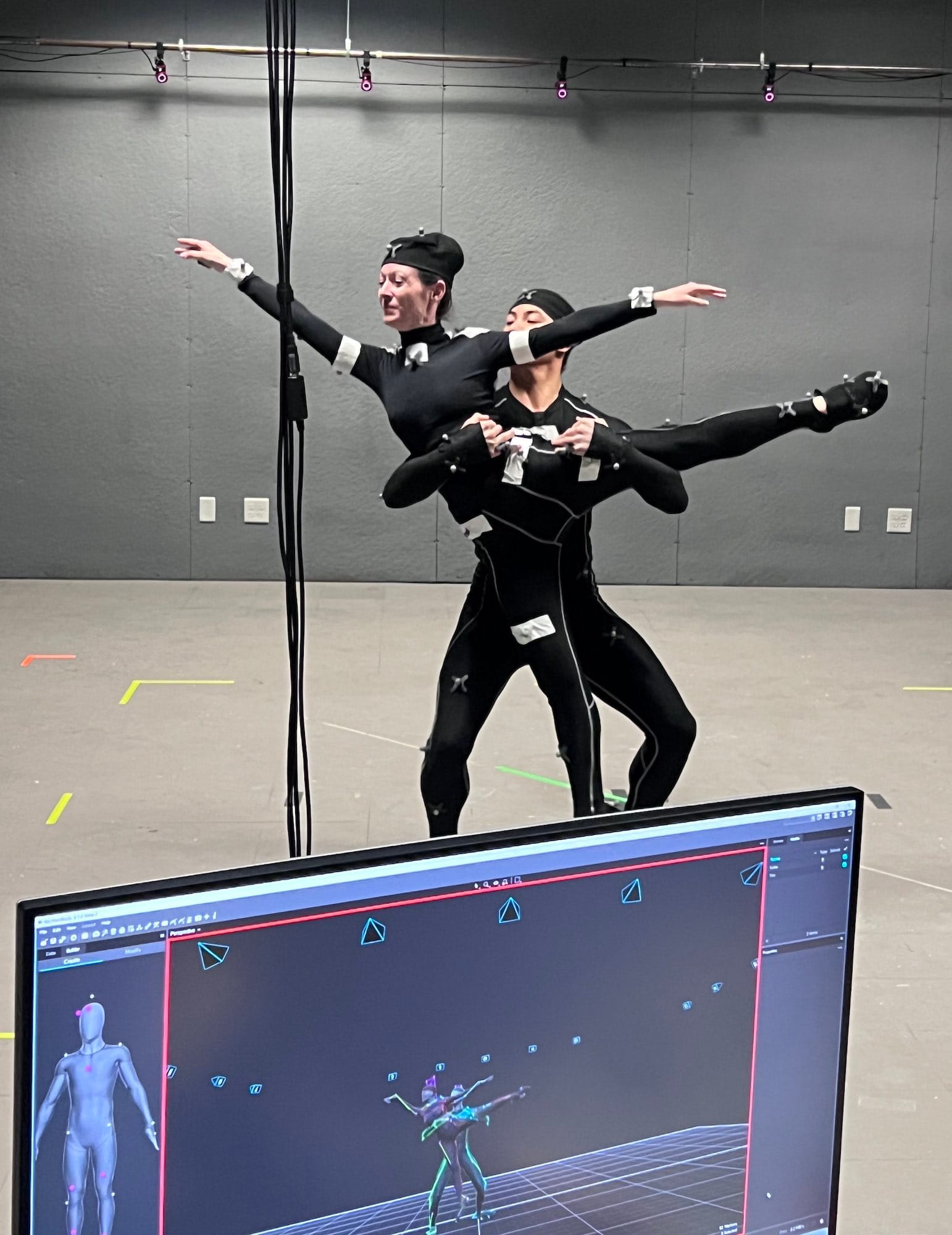 Their tasks included putting two of the dancers in motion capture suits, which animators use to make their work. Covered with sensors, the dancers performed pieces of the choreography at Shocker Studios.