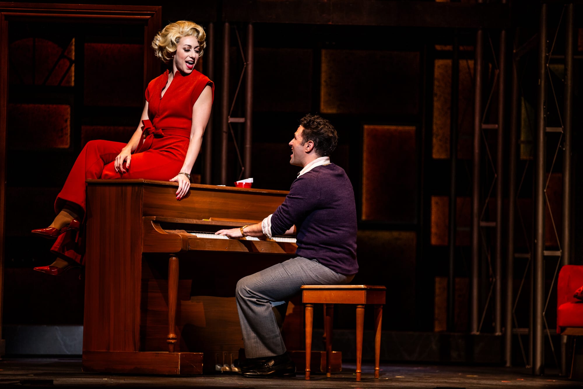 Front and center is the effervescent Devon Perry as Carole, who exudes joy and optimism even in our hero’s dark moments. Perry is the first actor in the history of the show to play this role while performing all of Carole’s piano parts herself — and there are a lot of them. She croons and belts, soars and whispers, capturing King’s dynamic yet vulnerable essence in songs that range from the early “Some Kind of Wonderful” (by King and her husband Gerry Goffin) to numbers from her legendary solo album “Tapestry,” which has been certified 14 times platinum by the Recording Industry Association of America.