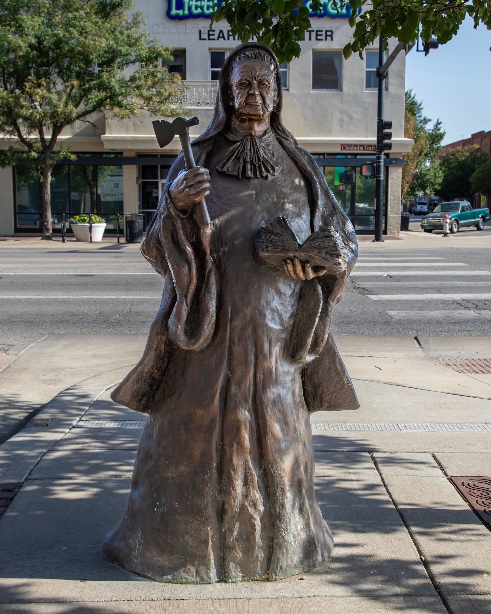 A few works from the City of Wichita public art collection, from top left: Lisa Rundstrom, Tom McGuire, and John Harrison; “Avian Migrations;” plastic, LEDs, computers, electronic components, sensors, aluminum; 2018. Babs Mellor, “Carry A. Nation,” bronze, 2018. Ellamonique Baccus; “Cultivating the Seeds of our Future;" paint, concrete; 2019. Dr. "Glen Day Park Wall" (formerly Grove Park); Tina Murano and students from Buckner, Isley and Mueller elementary schools; glass, tile, concrete, stone; 2007. Chris Garcia and Brickmob, “Wichita Baseball,” acrylic, 2020. Constance Ernatt, “River Troll,” metal, 2007. Photos courtesy of the City of Wichita.