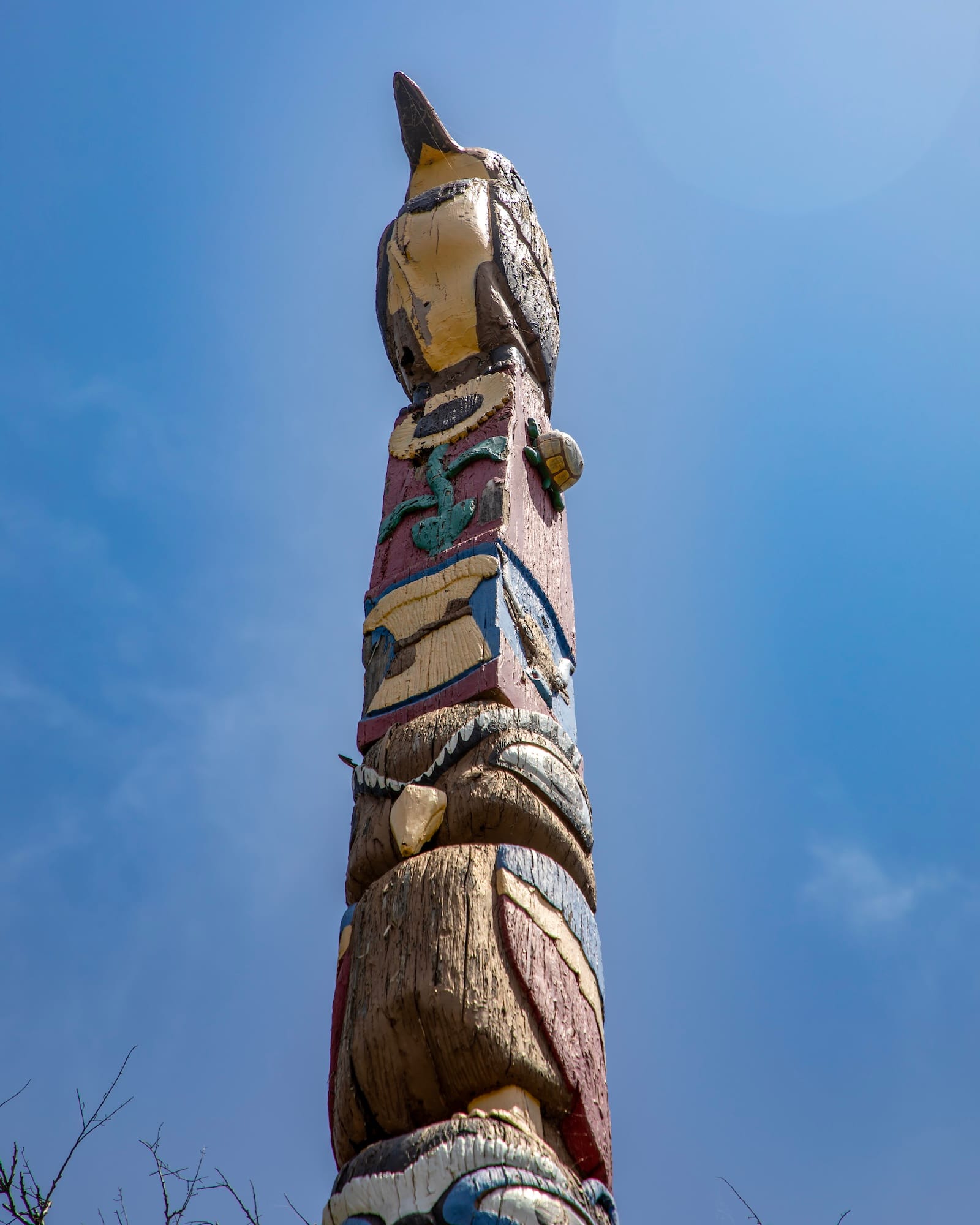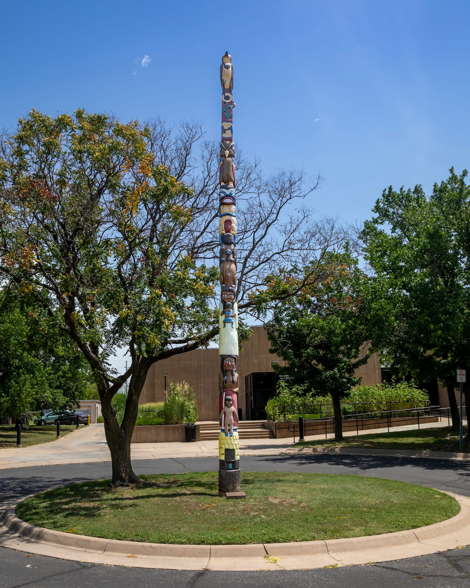Multiple works are currently being restored or are slated for restoration. They include “Heritage Pole,” which stands in front of the Mid-America All-Indian Museum.