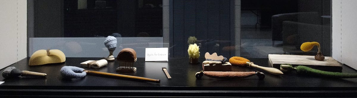 “Objects For Embrace,” “Objects For Touch,” “Objects For Tending,” “Objects For Nurture,” and “Objects For Care.” The directions in the titles offer a performance score — an encouragement to play around with the objects and feel them in your hand.