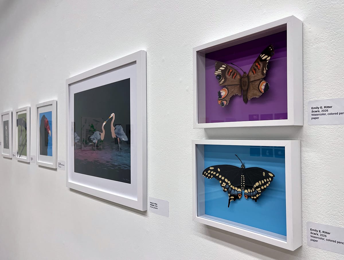 By combining scientific detail with personal symbolism, Ritter creates a space where “emotions connect us all,” turning a simple illustration of local fauna into a reflection on resilience.