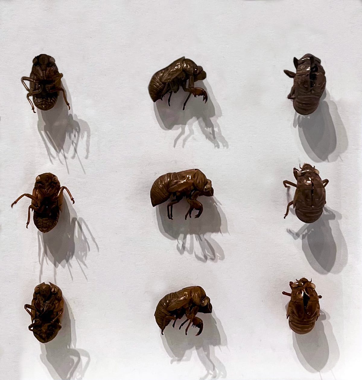 In her 2023 installation “Superb Dog-Day Cicada Husks,” Ritter completes a fascinating material arc. Here, from using synthetic media to imitate life, she moves to lifting elements directly from nature. By arranging unaltered cicada exoskeletons in a specimen-like grid, Ritter reveals the elegance of a natural world existing as art itself, with no editing or adornment.