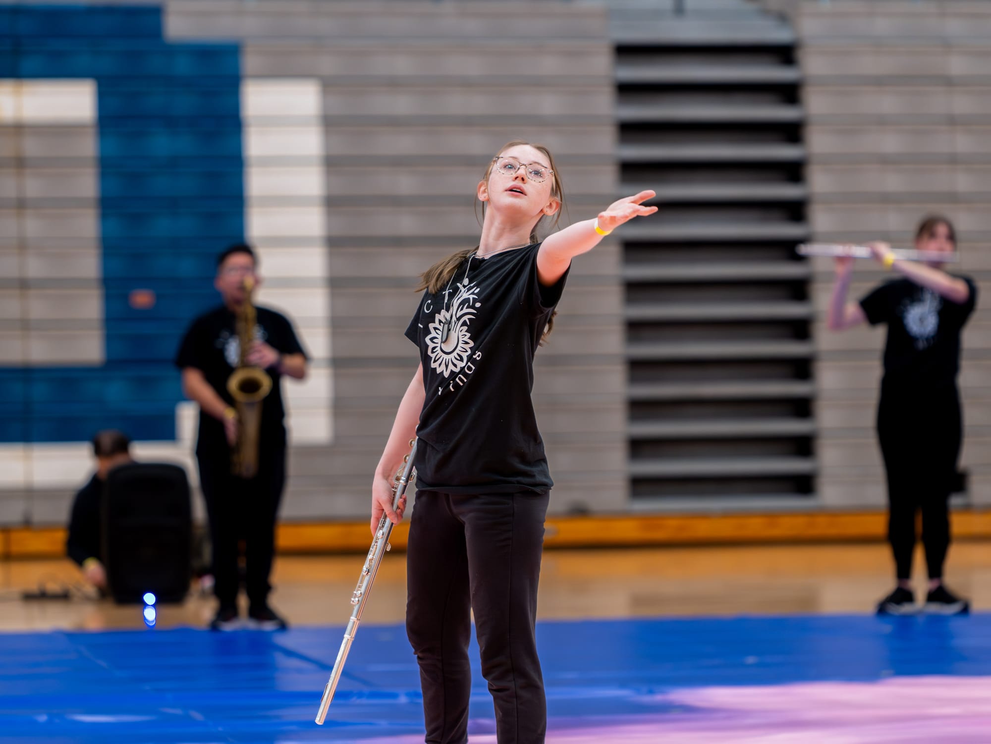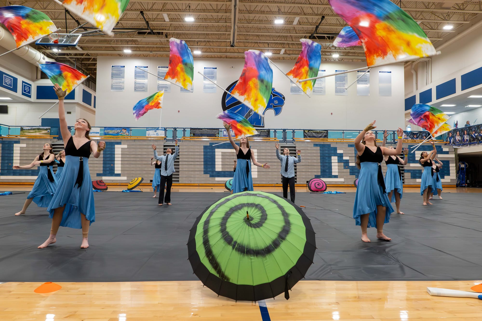 “It’s just awesome to me to give them that positive environment,” Funke said. “They build up each other’s confidence. You can be good by yourself, but you can be good as part of a team, too.” For younger students, like those in Funke’s Goddard Middle School Winter Guard, seeing the more advanced groups perform is exciting because they get to see what’s possible.