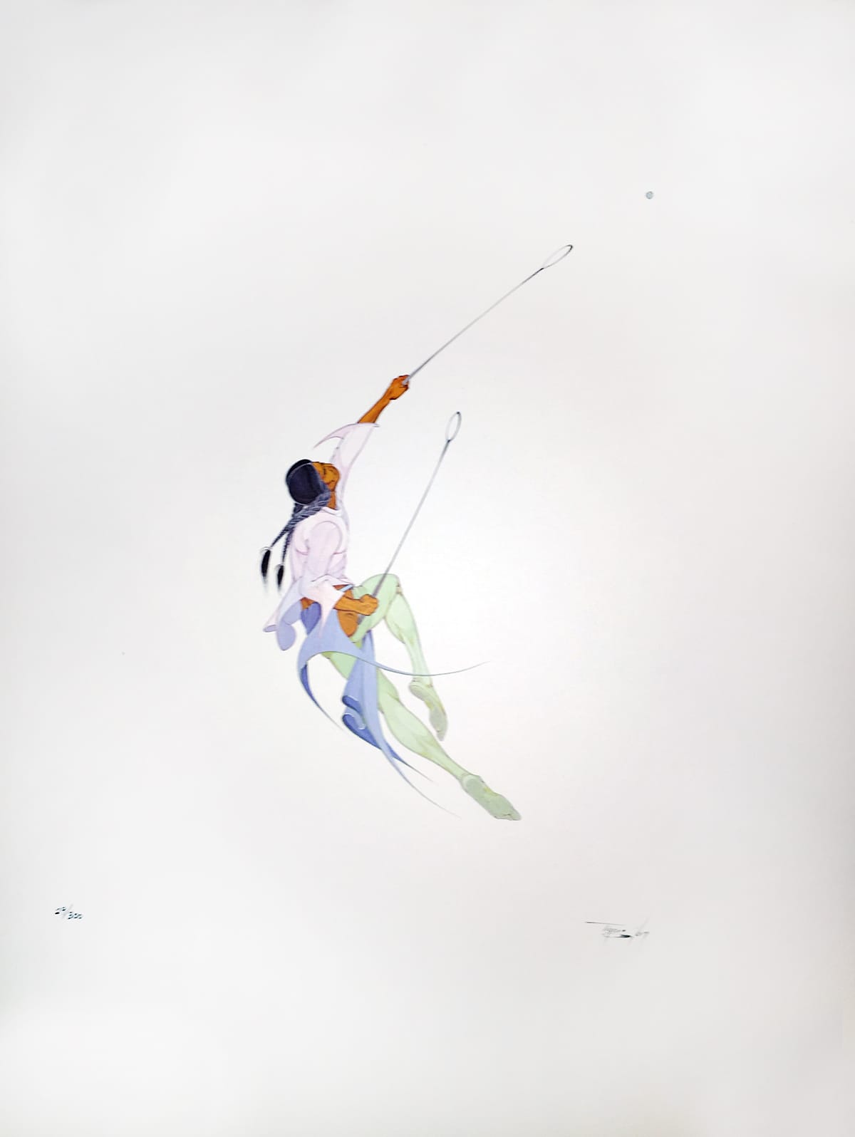 One of the hallmarks of Tiger’s work is the grace of movement of his subjects, from the long wisps of hair floating in the wind to the lithe bodies and the forms they take. It reminds me of Japanese Ukiyo-e style, in which the focus is on the figures, including their actions and clothing, and the background is almost nonexistent. Tiger’s approach evokes whimsy and spirituality in a way that celebrates transcendence and the unique beauty of conscious being.