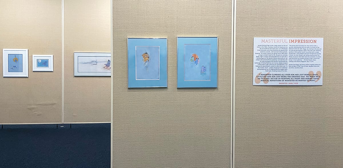 Installation images of Jerome Tiger's work at the Mid-America All-Indian Museum.