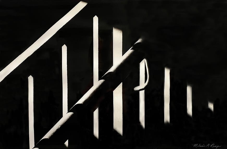 However, due to Tiger’s minimalist style, they do not appear to be walking toward anything. The play between the faint and the definite, from the figures themselves to their clothing to the barely discernible rock at one group’s feet, speaks to the intangibility of the soul’s journey in a way that makes no declarations or exclusions.