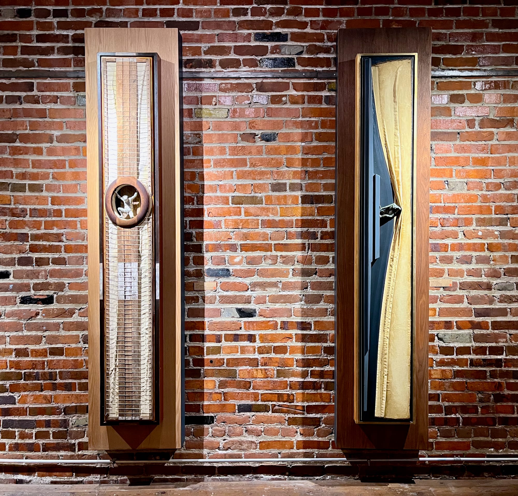 “Connie and John have been forces in the Wichita art scene for years,” says Jim Johnson, art historian and independent curator who was among the crowd of gallery-goers at the opening. “John is primarily a painter, although as a skilled craftsman he often includes assemblage in his work. Connie is a sculptor who works with cast bronze and found objects.”
