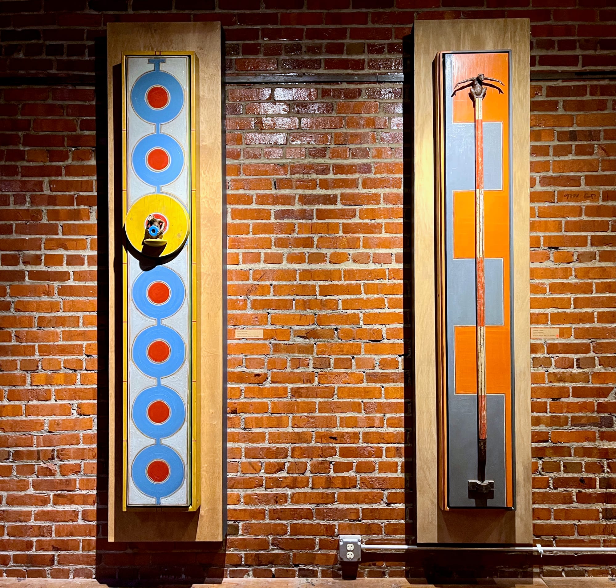 "Red Right Hand" is the bronze assemblage that the Ernatts consider their “proof of concept” for their latest collaborative explorations of the confines of creativity. They restricted themselves to a repeated form and a straight-ahead focus on the basics of line, shape, and color. “We wanted to have a good balance of my painting and Connie’s sculpting,” John says. “The works didn’t have to mean anything. They didn’t have to say anything or teach anything. We just wanted to deal with the simplest elements of art, and then we would solve whatever problems we would come up against together.”