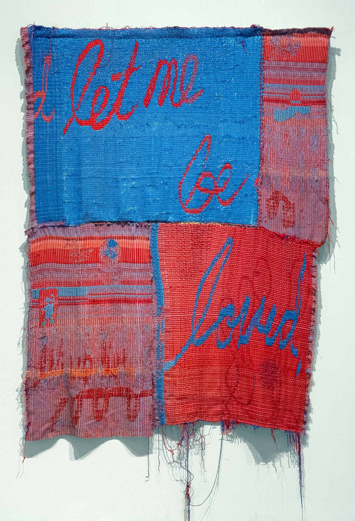 Poppy DeltaDawn, “Let me be loved,” 2025, handwoven mylar and cotton thread. Photo courtesy of the Marianna Kistler Beach Museum of Art, Kansas State University.