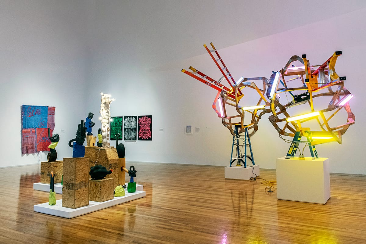 Installation views of “Kansas Triennial 25/26.” Photos courtesy of the Marianna Kistler Beach Museum of Art, Kansas State University.