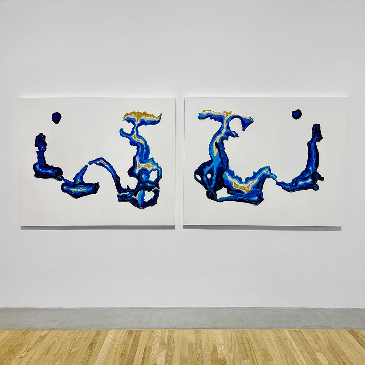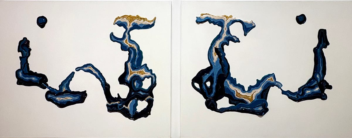 Weeks after seeing the show, I keep thinking about Mona Cliff’s "You Can’t See the Wind," a gorgeous diptych of organic forms. From a distance I saw these images as gestural marks — swirls of paint quickly laid down on canvas before the colors had a chance to mix. Up close, I discovered a different story, one not of rapid movement but of what I imagine as slow repetition.