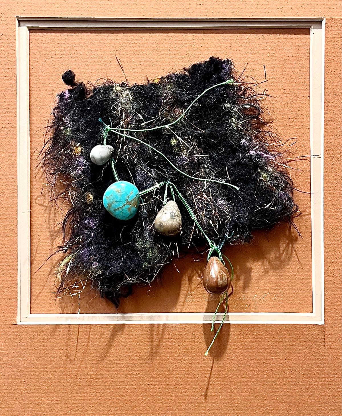 Works by Kaye Abbott, from left: “Winter Moon,” found object, wool; “Imagination Station,” mixed media, found objects, wool; "Party Time," mixed media, wool, and beads. Photos by Emily Christensen for the SHOUT.