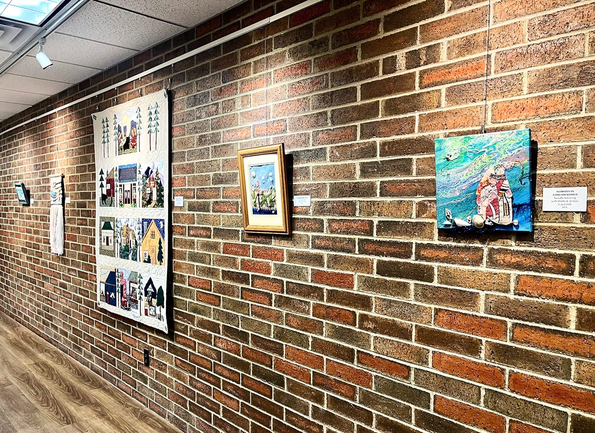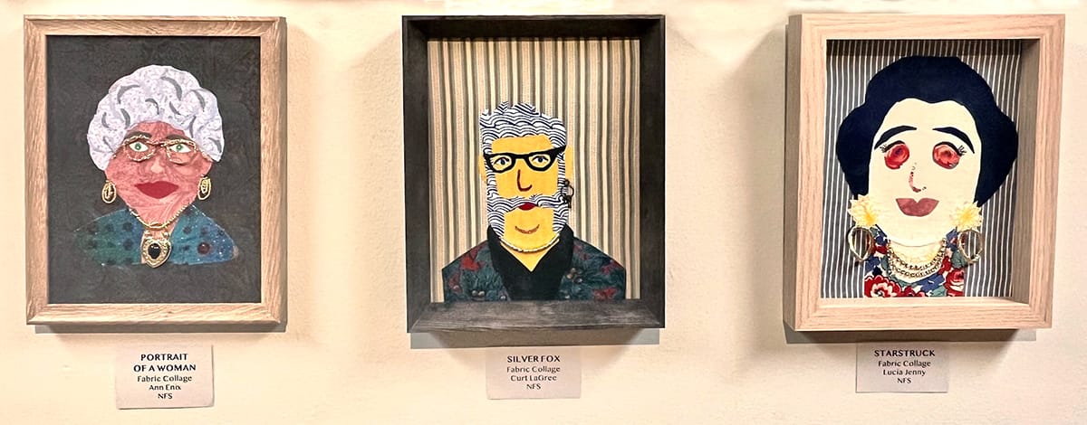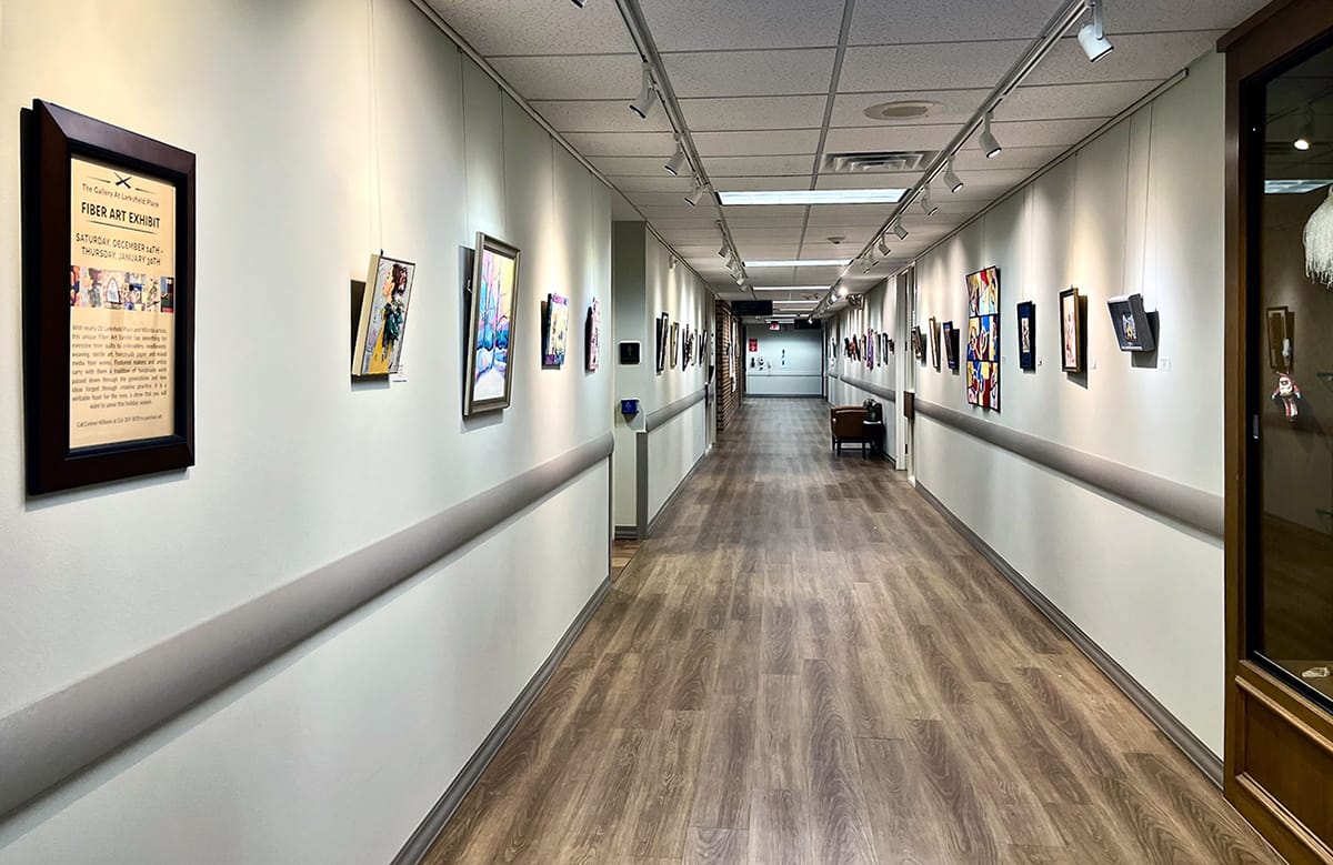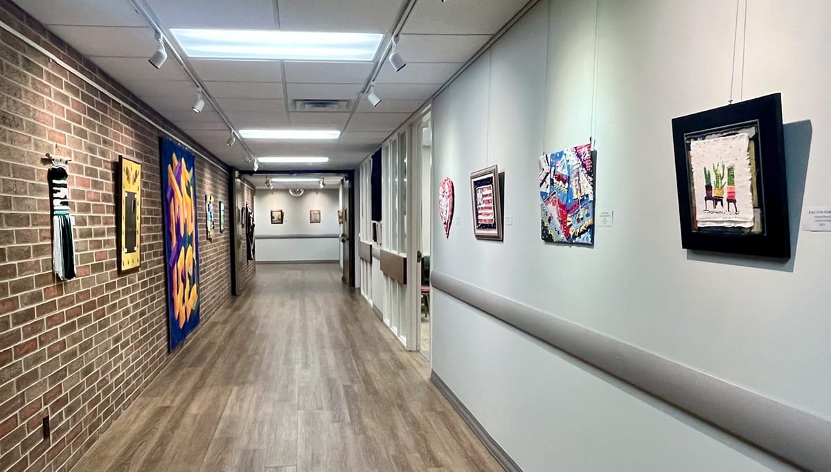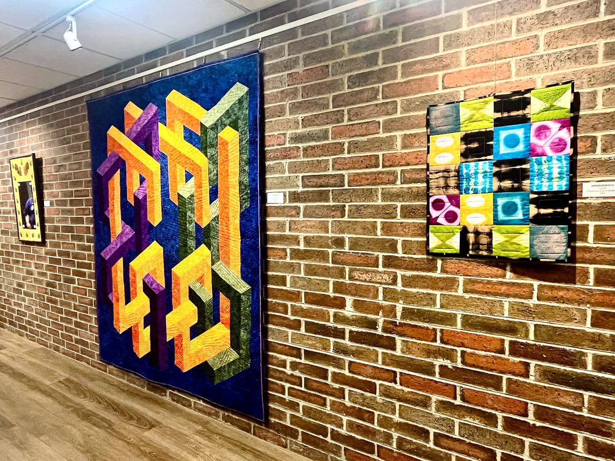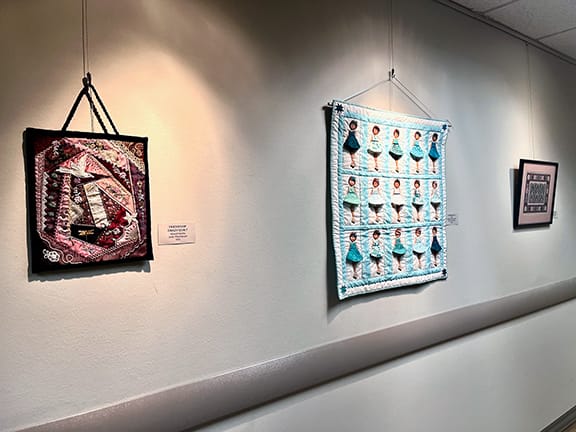 Installation views of the fabric art showcase at Larksfield Place, on view through January 30. Photos by Emily Christensen for the SHOUT.