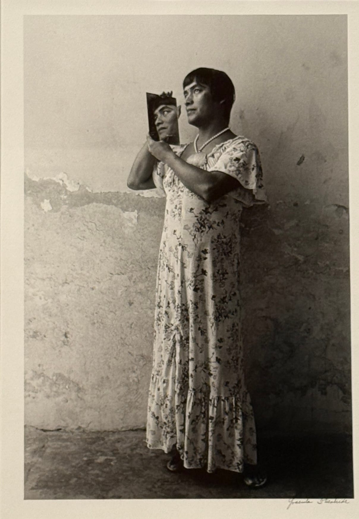 Some of the photographs in the exhibition ask viewers to tap into their sense of humanity. My personal favorite is “Magnolia con Espejo (Magnolia with Mirror)” by Graciela Iturbide. The subject Magnolia appears to be a genderqueer individual who wears a floor-length dress and holds a mirror while gazing into the distance. Magnolia exudes a quiet confidence. I find that photos like this rarely make it into exhibitions in which the focus is not showcasing queerness. Magnolia’s captivating gaze made me want to learn more about them.