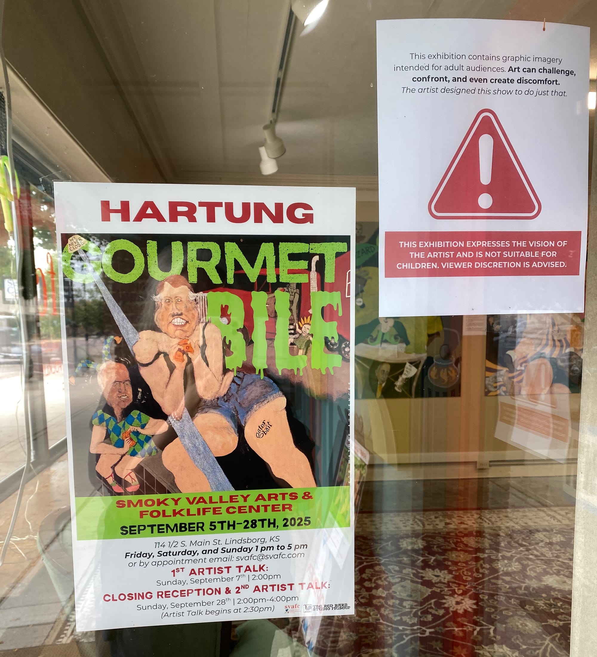 Hartung's stinging political commentary returns to the Smoky Valley Arts & Folklife Center in Lindsborg, Kansas.