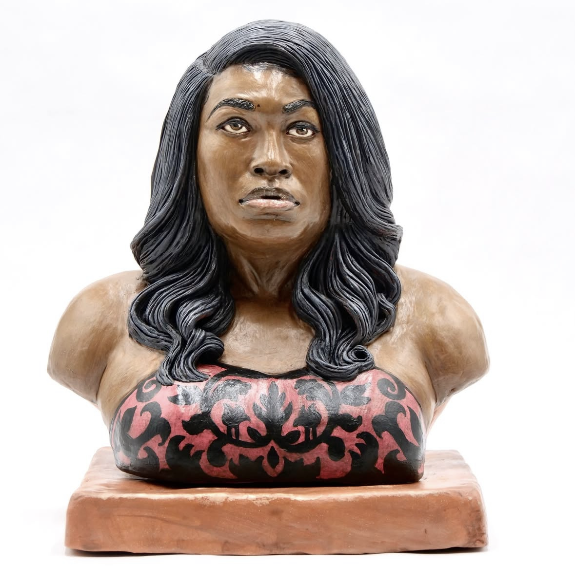 Lily Stennis-Vinson, "Lil Gurl Beauty Is Pain," 2025, ceramic, hair, 11 by 8 inches. Photos courtesy of the artist.