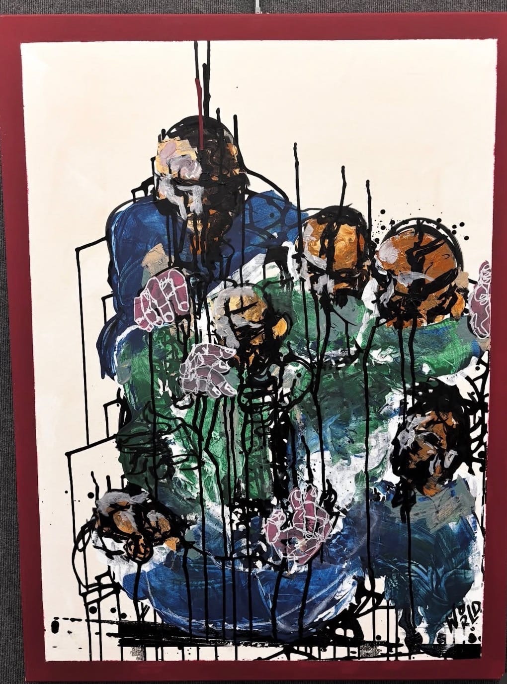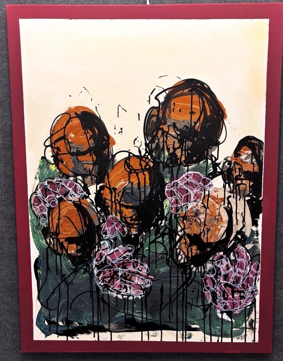 Deon Morrow, “Riot Series (tryptich),” mixed media on canvas, 48 by 60 inches. Photos courtesy of the artist.