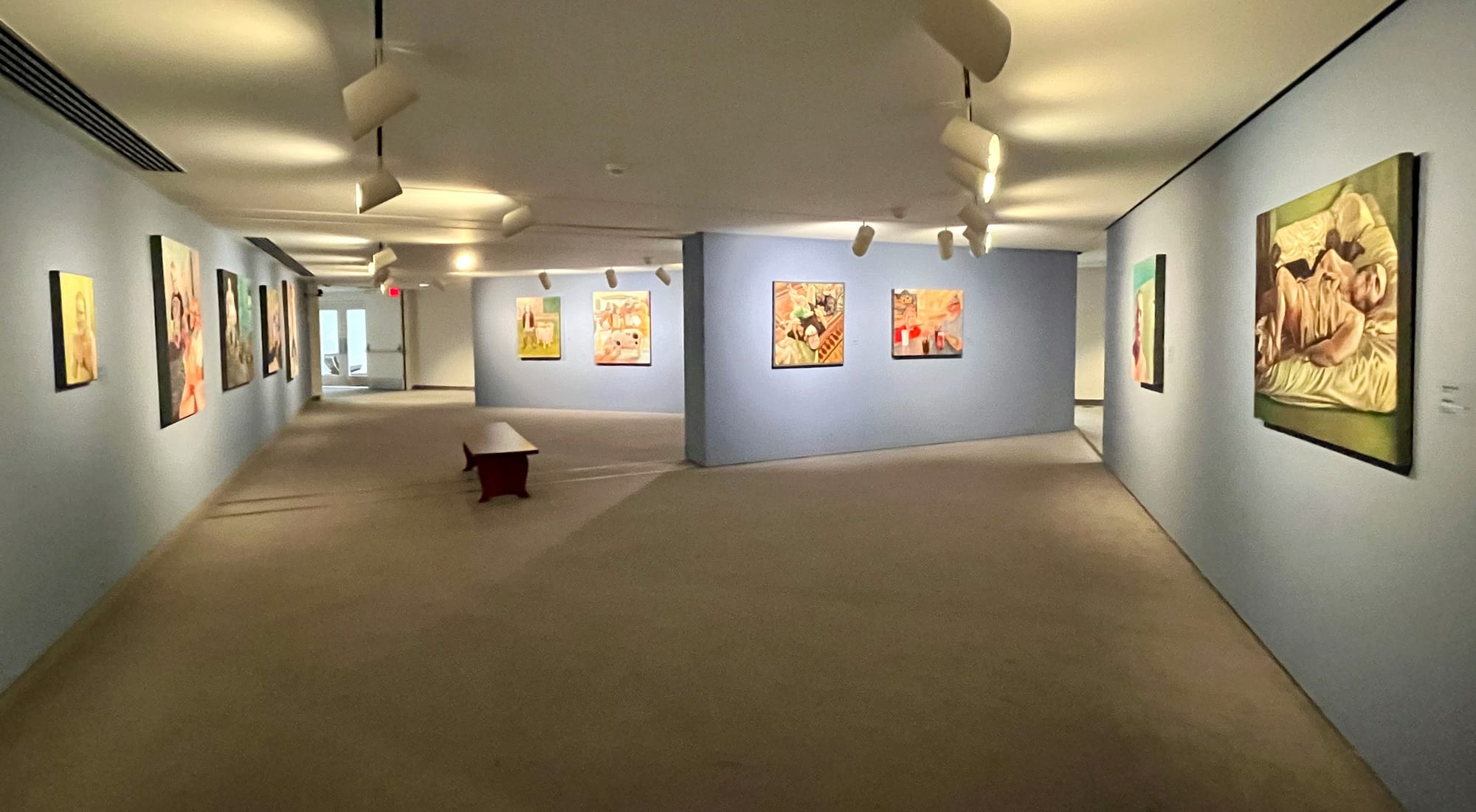 The two exhibitions work well together as a retrospective not because they survey the artist’s development over time — that exhibition still awaits its hour — but because they consciously highlight the artist’s ability to capture a wide range of emotional states in her recent work. The somber "Rachel Curtis: Dissolution" at WAM is a rumination on the challenges and strains of everyday family life, informed by the artist’s divorce shortly before the exhibition opened (a fact she discussed publicly at her artist talk at WAM on May 1). The vibrant "Talk to Me" at RSG, by contrast, comes across as a celebration of the relationships with her friends and young adult daughters that have, one infers, buoyed the artist during a challenging time.