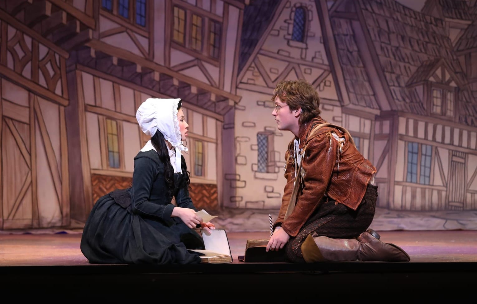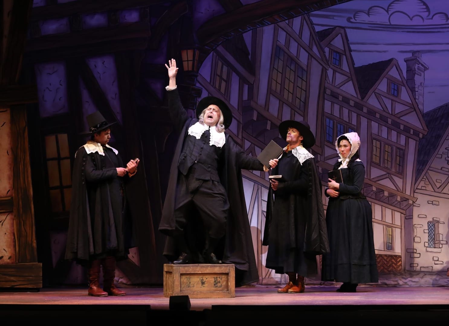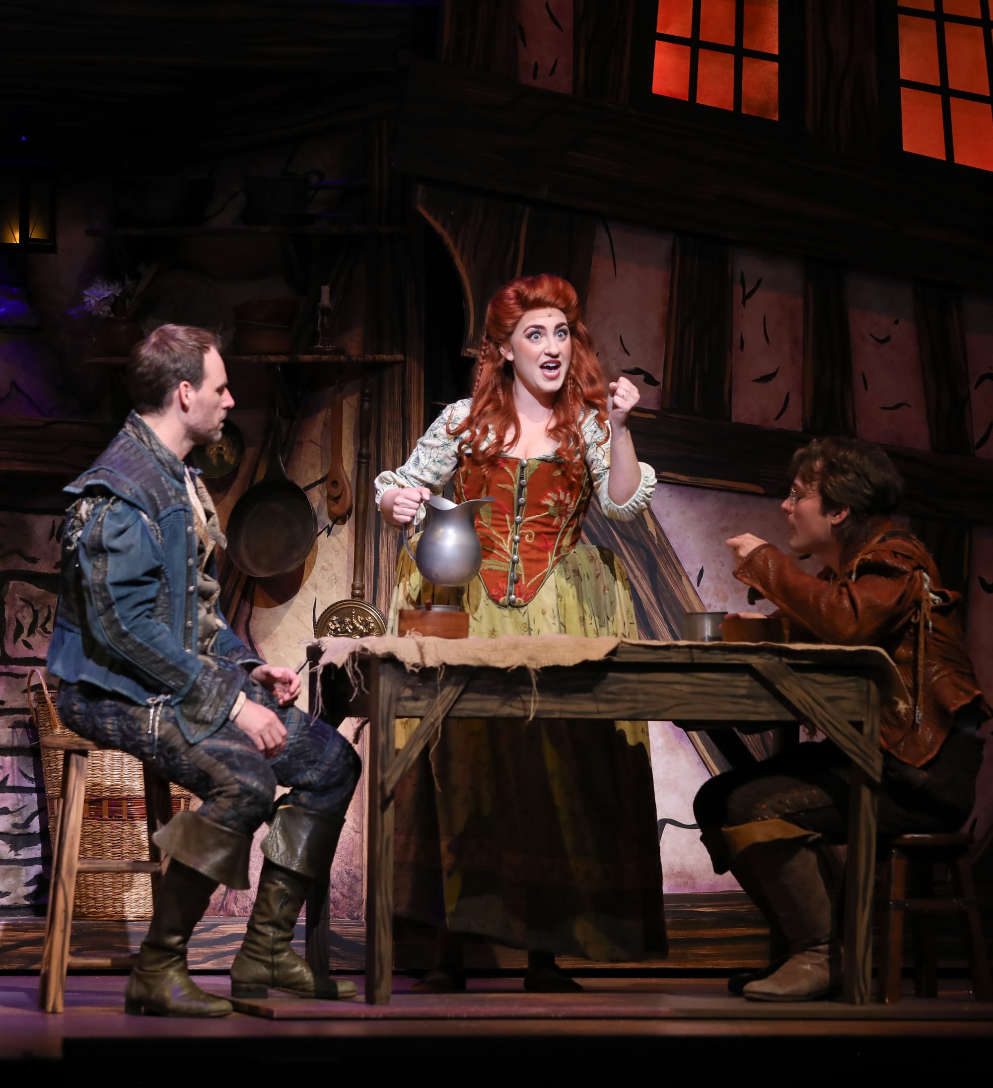 Talk about commitment to the concept! Everyone on stage is full-tilt in it. When they are sincere, it’s honestly moving. When they are silly, totally absurd. This is true all around. In addition to Harvey’s Shakespeare, highlights include Coles and Thoebald Jr.’s Bottom Brothers, John Scherer as the very-nearly-accurate prognosticator Nostradamus, Steve Hitchcock’s side-splitting send-up of uptight preacher Brother Jeremiah, and Chelsey Lynn Alfredo as the loyal, rough-and-tumble Bea.