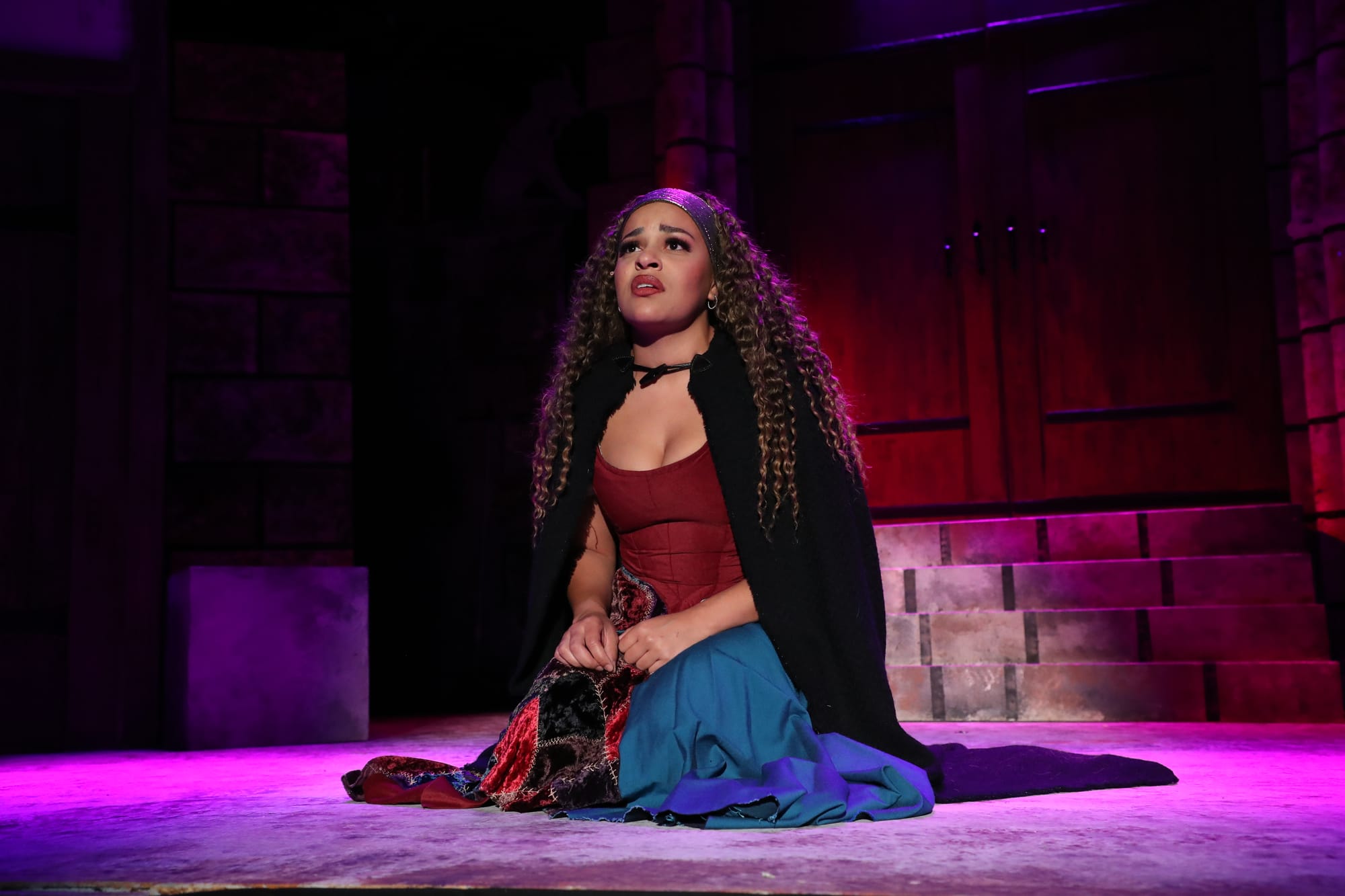 The plot turns when Quasimodo encounters a beautiful Romani woman played by Koko Blanton. An outcast herself, she befriends our unlikely hero. A consistently top-notch performer, Blanton’s vocal delivery and endearing characterization of Disney’s Esmeralda are two strong points of this performance.