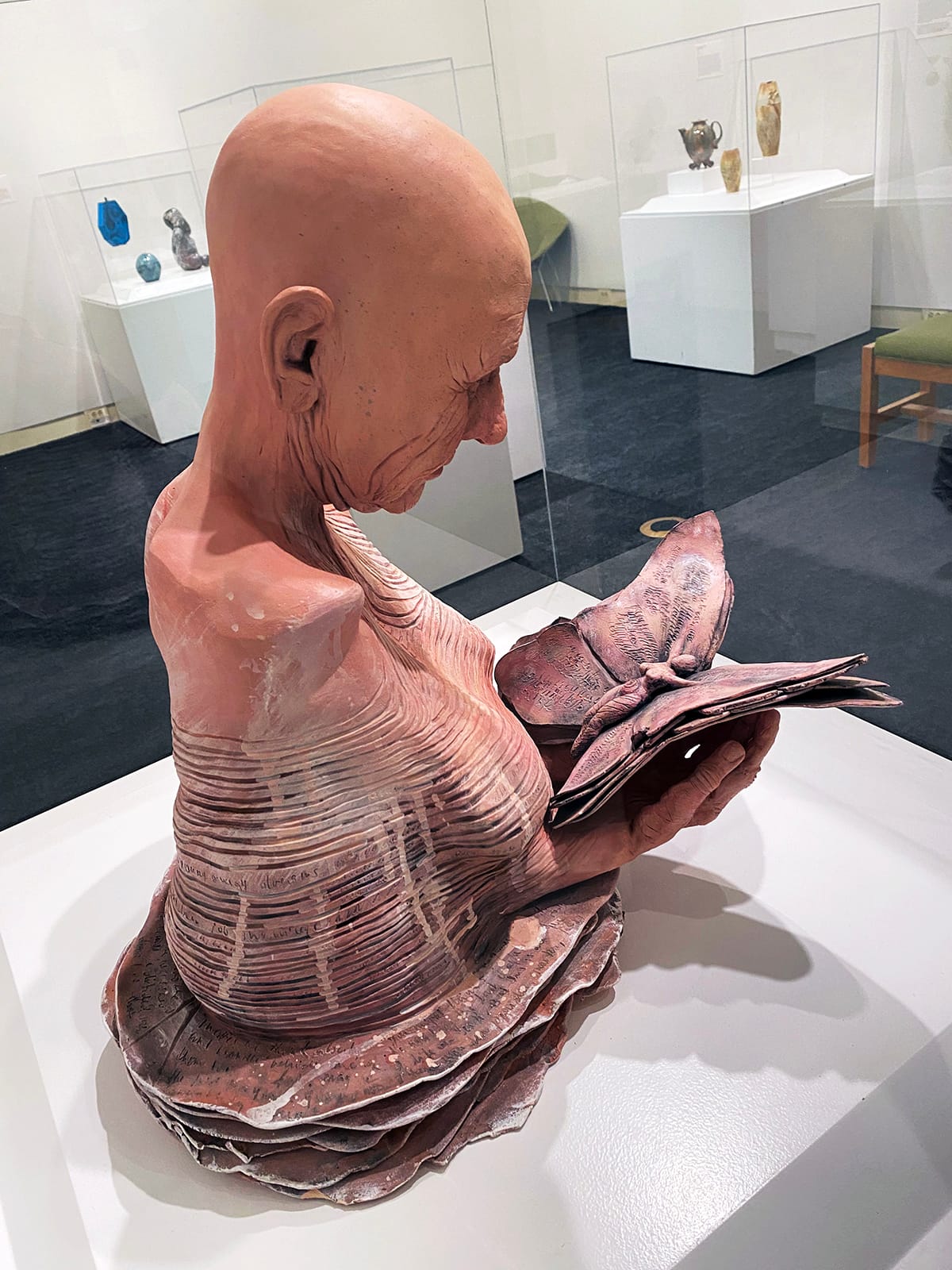 Michaela Valli Groeblacher of Lindsborg was awarded both Second and Third Prizes for her ceramic busts “Song for the Mimbres” and “The Reader.” The subjects of both sculptures are older adults, whom Groeblacher says embody the “essential psychological and spiritual aspects of a human’s vulnerability versus strength ... while exuding the beauty of experience.”
