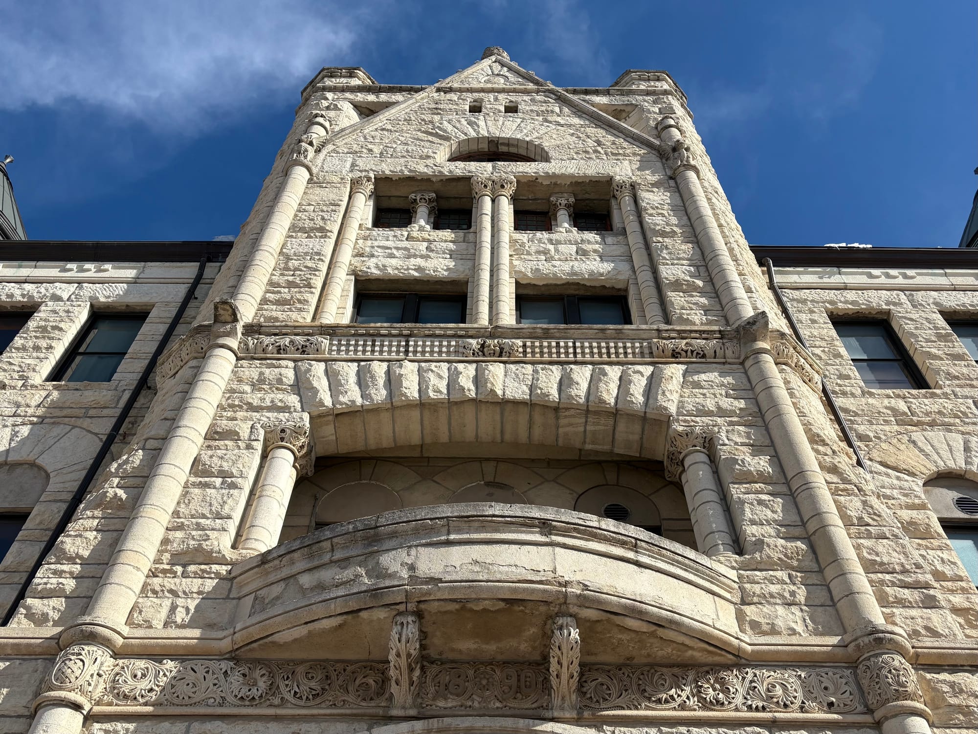 Guarding the north and east entrances are gargoyles of various species and expressions. Their faces are easy to miss, as they don’t have a distinct platform or color. Each head blends in, perhaps startling passersby who happen to glance into their blank limestone eyes.