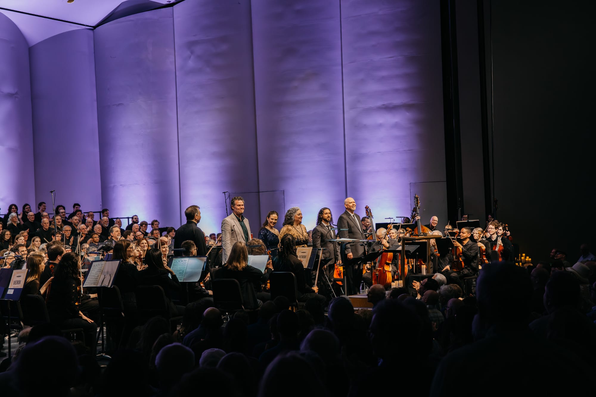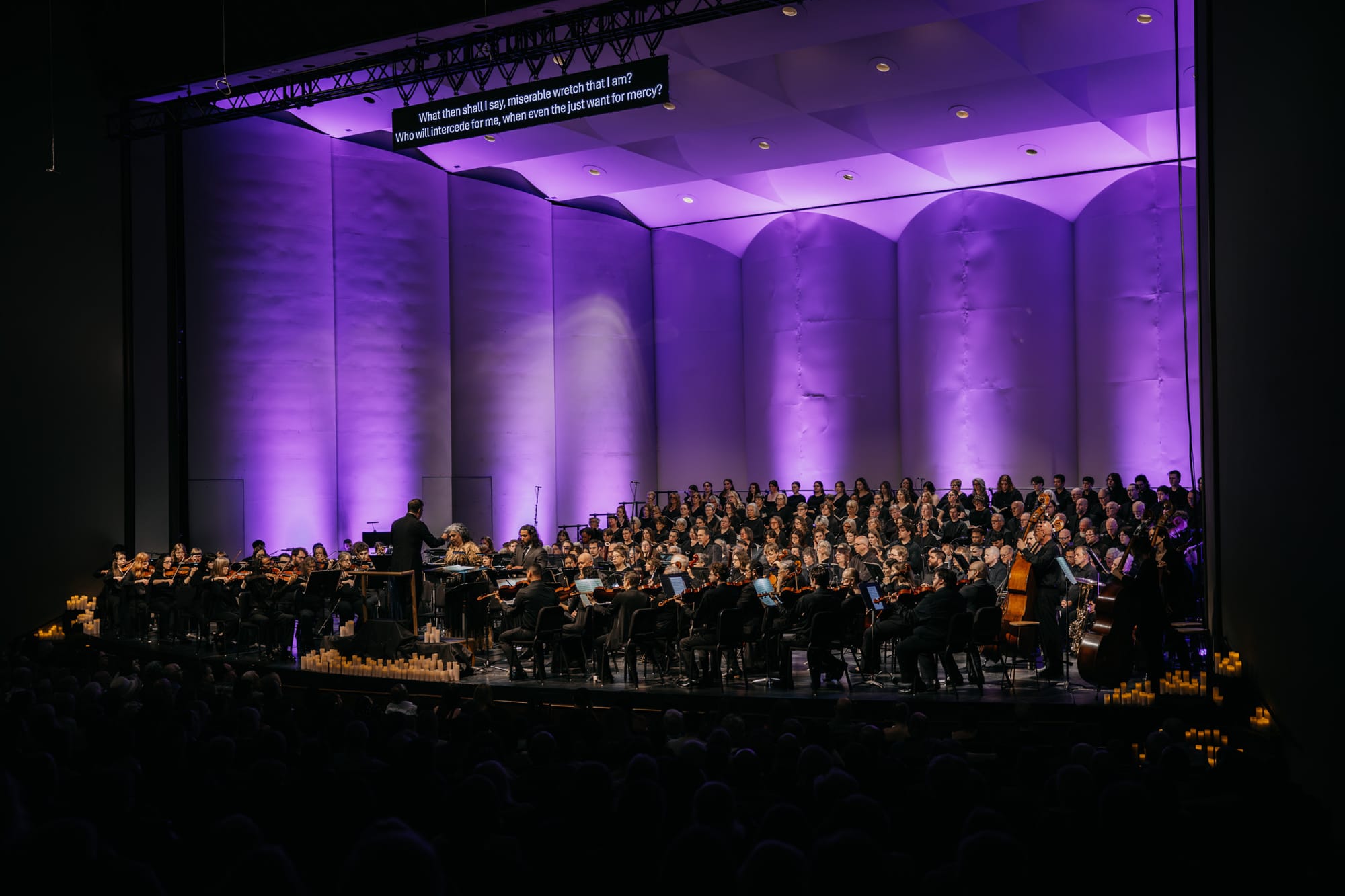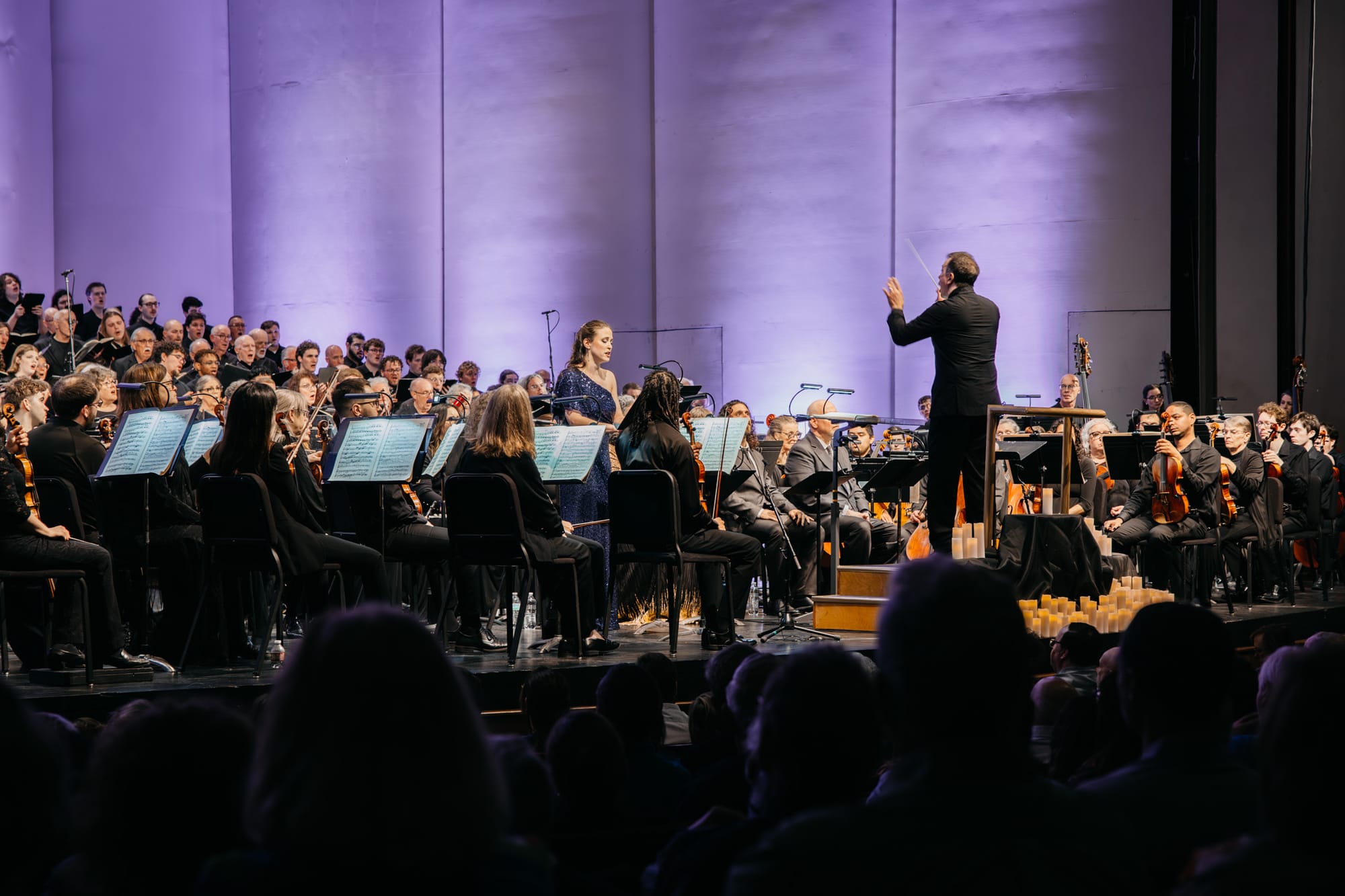 For this concert, the WSO invited audience members to donate in memory of a loved one. Those who participated found electric candles waiting at their seats. During the “Lux Aeterna,” the hall lights dimmed, and flickering candles switched on throughout the house, joining the rows of electric candles already lining the edge of the stage. It was clearly a deeply meaningful moment for many in the audience.